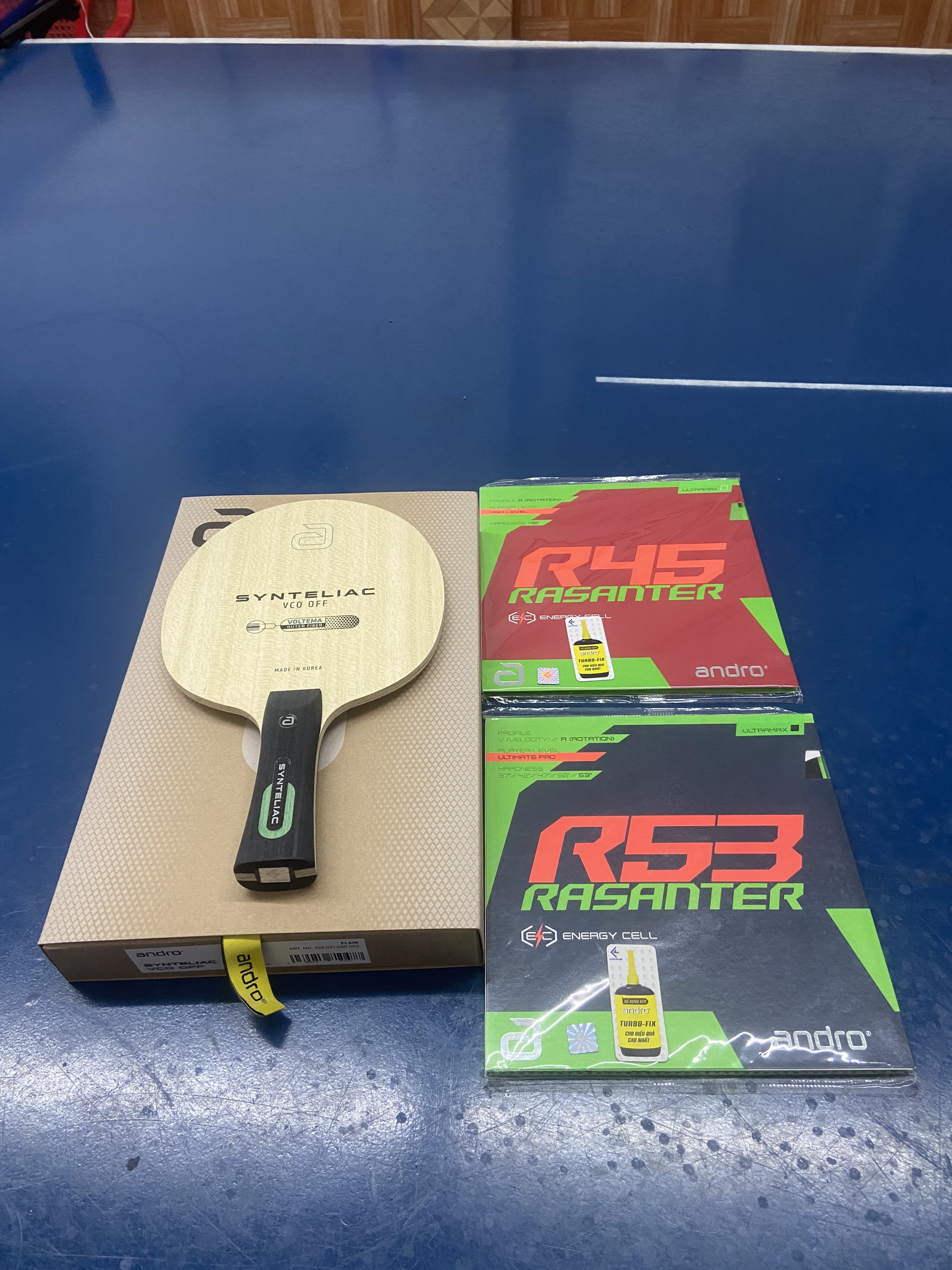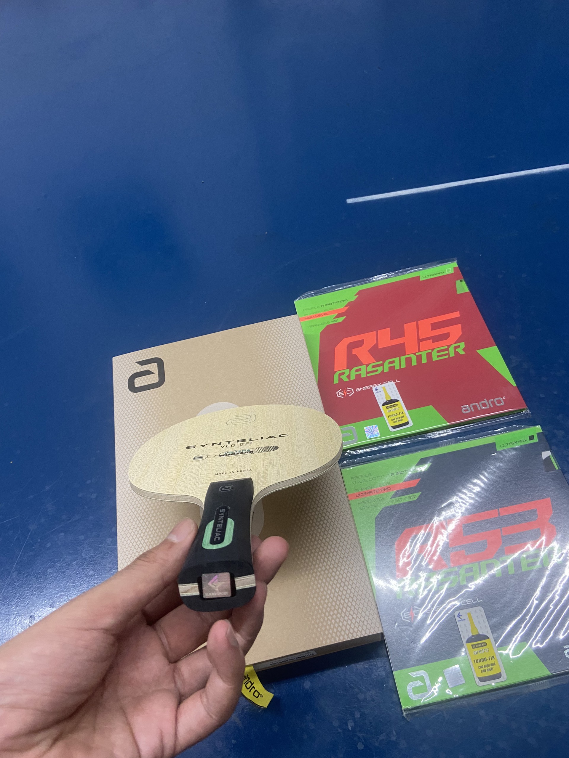 Hình ảnh combo cốt vợt Andro Synteliac VCO kết hợp mặt vợt Andro R53 và Andro R45